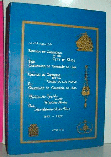 Edición trilingue (español, inglés y alemán). Contenido: Bastión de Comercio en la Ciudad de los Reyes el Consulado de Comercio de Lima 1593-1887. Bibliografía selectiva; Apendice: Proclamación del Comercio Libre por el General San Martín en Pisco el 21 de octubre de 1821; Ilustración 1 cargado al tope; 2: la narrativa y la tabla del documento manuscrito el cual es la base para la la tabla y gráfico siguientes;…